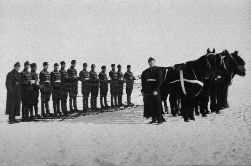 Eesti ratsarügemendi allohvitserid enne skijöringi sõitu. Foto: Fotis